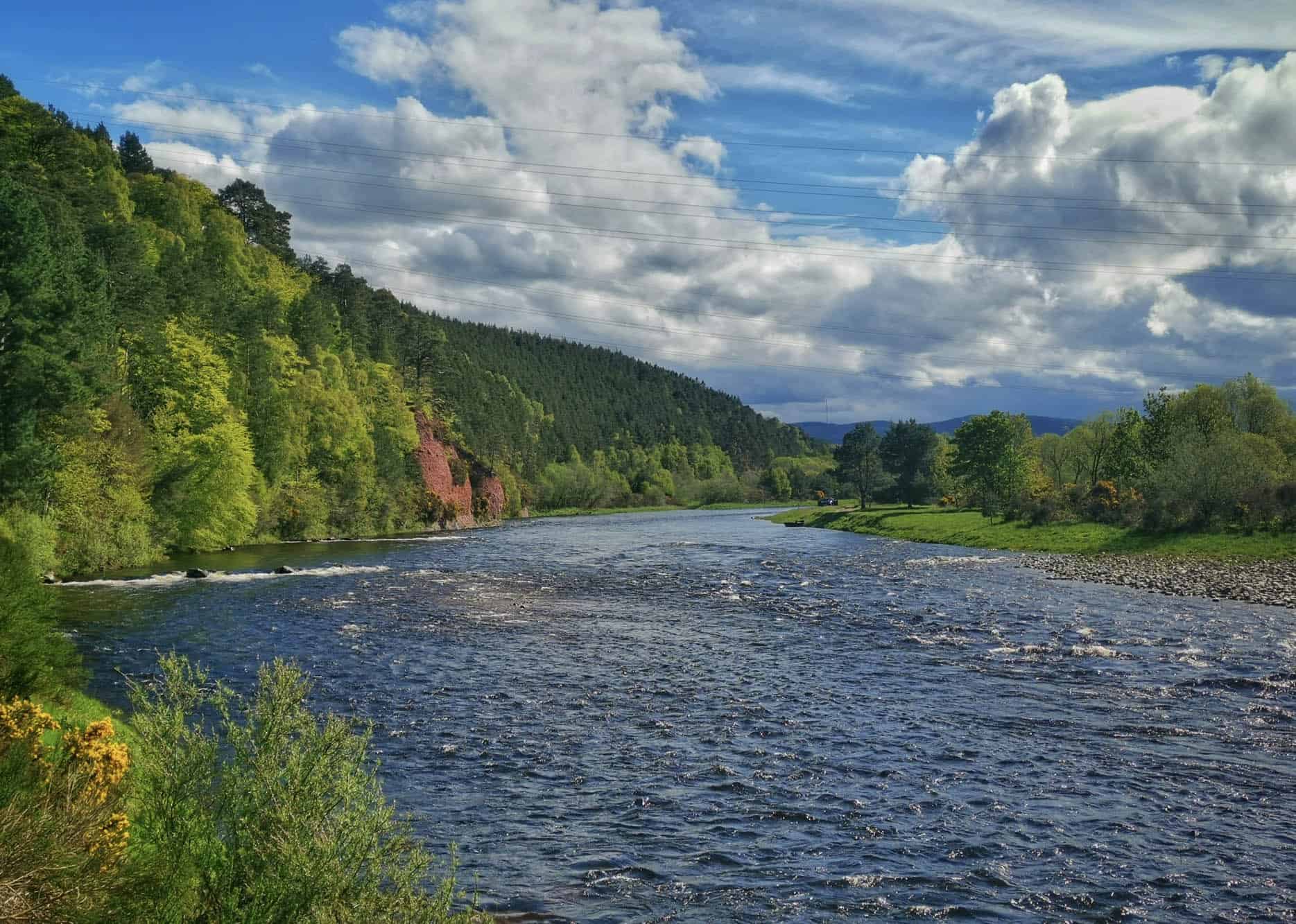 The Lower Brae Water has the tree-covered bank of Ordequish at its southern end and the old Fochabers Bridge at its northern end. The named pools include Upper, Middle and Lower Intake, Grilse, Upper Dipple, Dipple, Lillies and Bulwark.