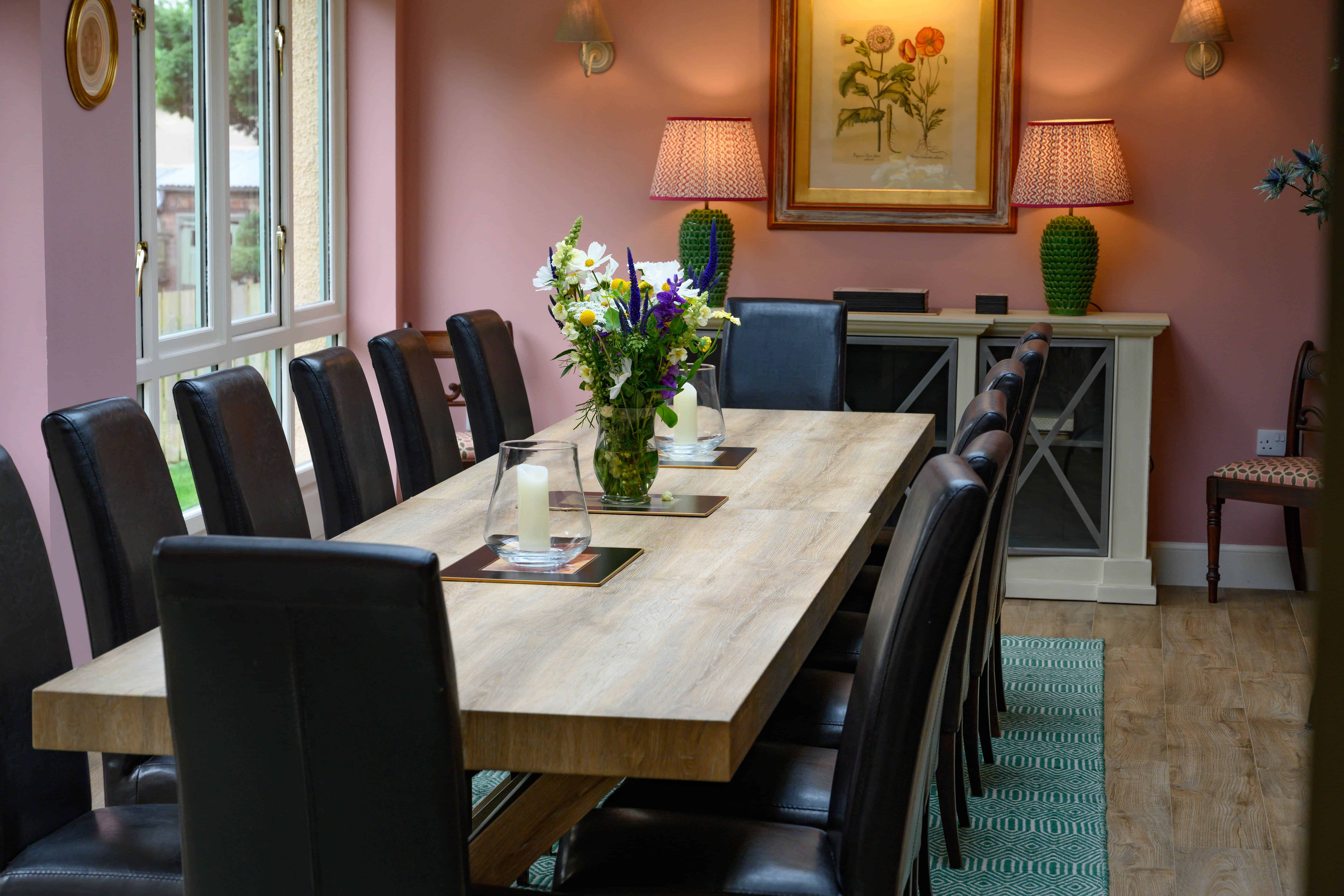 A house that sleeps so many of course needs to have an appropriate entertaining space for everyone to enjoy one another’s company. The large lounge area is perfect for just that, as it naturally flows into the Lodges very own Orangery. The Orangery is a bright and airy conservatory dining room that can seat up to 14 guests, and it truly is a wonderful space. The brand-new fitted kitchen, drying room and utility room ensure that the Lodge is more than equipped for up to 14 guests.
